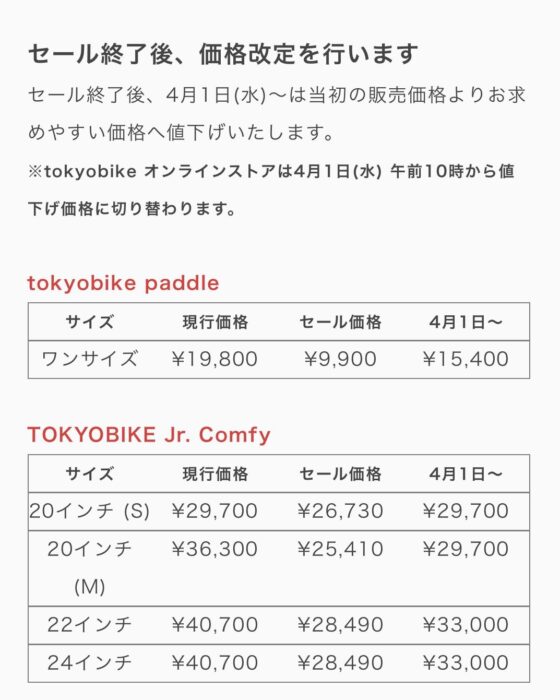 2026.02.20 商品情報tokyobike paddle & Jr. Comfy 販売終了に伴う特別セール開催!